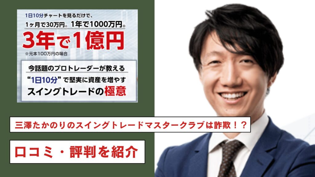 【返金可能】三澤たかのりのスイングトレードマスタークラブは詐欺!?口コミ・評判を紹介
